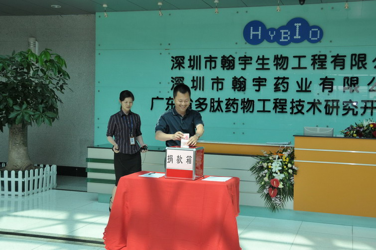 突如其來的災害,震撼著每個中華兒女的心靈,也牽動著每個“翰宇人”的心。雖不能到一線抗震救災,但也要為災區(qū)人民做點事。5月13日,公司黨支部向全體黨員、共青團員發(fā)出了“眾志成城,關愛災區(qū),獻一份愛心”的倡議。在公司領導、黨、團員的帶動下,全體員工積極參與向災區(qū)人民獻愛心的活動。截止5月14日中午,公司共捐款20萬元,其中公司捐款14萬元,員工自發(fā)捐款6萬元,捐款員工100多人,同時還有55名員工報名義務獻血支援災區(qū)人民。