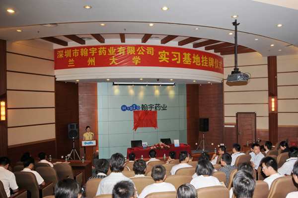 在掛牌儀式上,公司領(lǐng)導(dǎo)對(duì)蘭州大學(xué)生命科學(xué)學(xué)院師生的到來表示熱烈歡迎,介紹了翰宇藥業(yè)的發(fā)展現(xiàn)狀以及與蘭州大學(xué)生命科學(xué)學(xué)院的淵源,同時(shí)也對(duì)前來實(shí)習(xí)的蘭大學(xué)生寄予厚望,希望他們將蘭大 “勤奮、求實(shí)、進(jìn)取”的學(xué)風(fēng)帶入翰宇,為翰宇的發(fā)展注入新鮮活力。蘭州大學(xué)生命科學(xué)學(xué)院副院長陳強(qiáng)教授代表院方發(fā)言,對(duì)翰宇藥業(yè)-蘭大生命科學(xué)學(xué)院實(shí)習(xí)基地的建立表示熱烈祝賀,感謝翰宇藥業(yè)為蘭大學(xué)生提供實(shí)踐機(jī)會(huì),希望通過實(shí)習(xí)基地這個(gè)平臺(tái),繼續(xù)深化實(shí)施“校企”社會(huì)實(shí)踐模式,并對(duì)雙方在人才培養(yǎng)共建、優(yōu)勢互補(bǔ)、技術(shù)合作等方面提出了幾點(diǎn)想法。雙方一致表示, 蘭大與翰宇藥業(yè)的強(qiáng)強(qiáng)合作,要獲得產(chǎn)出的最大化,不僅僅在于科研與技術(shù)的合作,更在于人才和智力的交流。與蘭州大學(xué)生命科學(xué)學(xué)院合作建立本科生教學(xué)(就業(yè))實(shí)習(xí)基地,是翰宇藥業(yè)在與蘭大長期校企合作的基礎(chǔ)上邁出的新的一步,通過實(shí)習(xí)基地的建立,推動(dòng)產(chǎn)學(xué)研的緊密結(jié)合,真正實(shí)現(xiàn)學(xué)校、企業(yè)、學(xué)生三贏的目的。