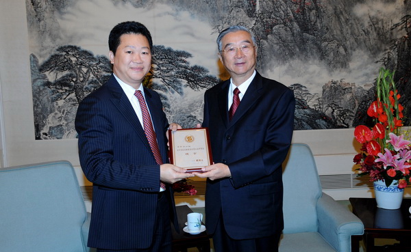 曾少強先生作為新當選的中國宋慶齡基金會理事之一,受到了中共中央政治局常委、全國政協(xié)主席賈慶林,全國政協(xié)副主席、中共中央統(tǒng)戰(zhàn)部部長杜青林,中國宋慶齡基金會主席胡啟立等領導同志的親切接見,并由胡啟立主席親自向曾少強頒發(fā)了理事證書。