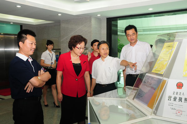 在深圳經濟特區成立三十周年之際,深圳市大力推進生物醫藥、新能源、互聯網三大戰略性新興產業,并成為未來深圳的支柱產業。翰宇藥業作為深圳市生物醫藥產業的龍頭企業之一,被深圳市列入重點資助的企業。為此,2010年8月4日下午,副市長吳以環、市藥監局藍鎮強局長等一行,到我公司進行視察、調研。