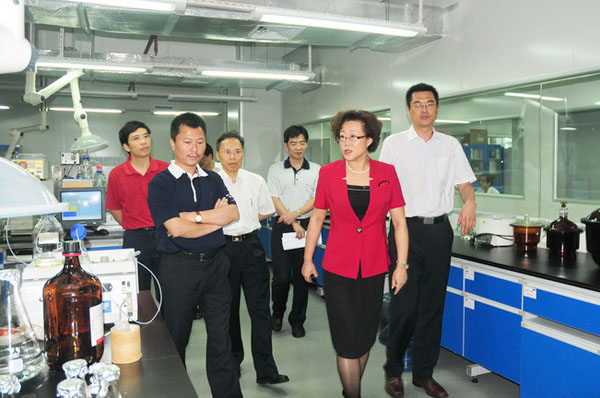 吳以環副市長對我公司始終堅持以科技創新為發展戰略,不斷培養和引進高端技術人才,構建企業核心競爭力,走專業化、高端化、國際化的發展思路和已取得的成果給予了高度評價,并鼓勵公司抓住當前良好的發展時機,突出優勢,快速發展,為我市和國家生物醫藥產業的發展做出貢獻。吳副市長還現場處理了公司提出需政府部門協調解決的一些實際問題。隨后,吳副市長一行在董事長曾少貴的陪同下,參觀了公司多肽藥物工程技術研發中心和質檢中心。