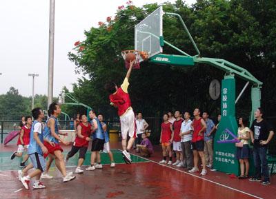 本屆總決賽在高新區總裁俱樂部舉行,籃球場上分外熱鬧,公司籃球愛好者都早早來到場邊觀看這場對決,公司領導也專程來到現場為兩支球隊加油鼓勁。開球之后,比賽在雙方隊員的激烈拼搶中如火如荼地進行著,積極奔跑、迅猛快攻、精準遠投、美妙上籃、完美配合······一幅幅高潮迭起、扣人心弦的畫面贏得觀眾們一陣陣激情喝彩和熱情歡呼。夕陽下,紅霞中,整個籃球場成為我們最閃耀的舞臺。